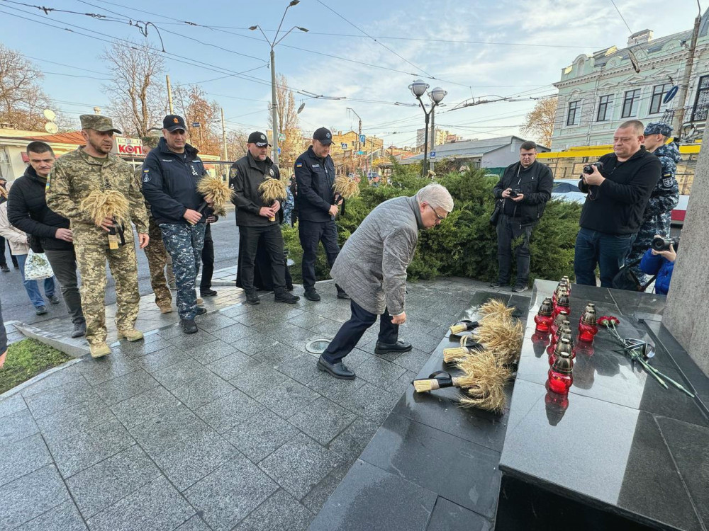 На честь трагічної дати в Одесі на бульварі Гетьмана Сагайдачного відбувся захід покладання квітів та композицій із колоссям до пам'ятного знака жертвам Голодомору в Україні.